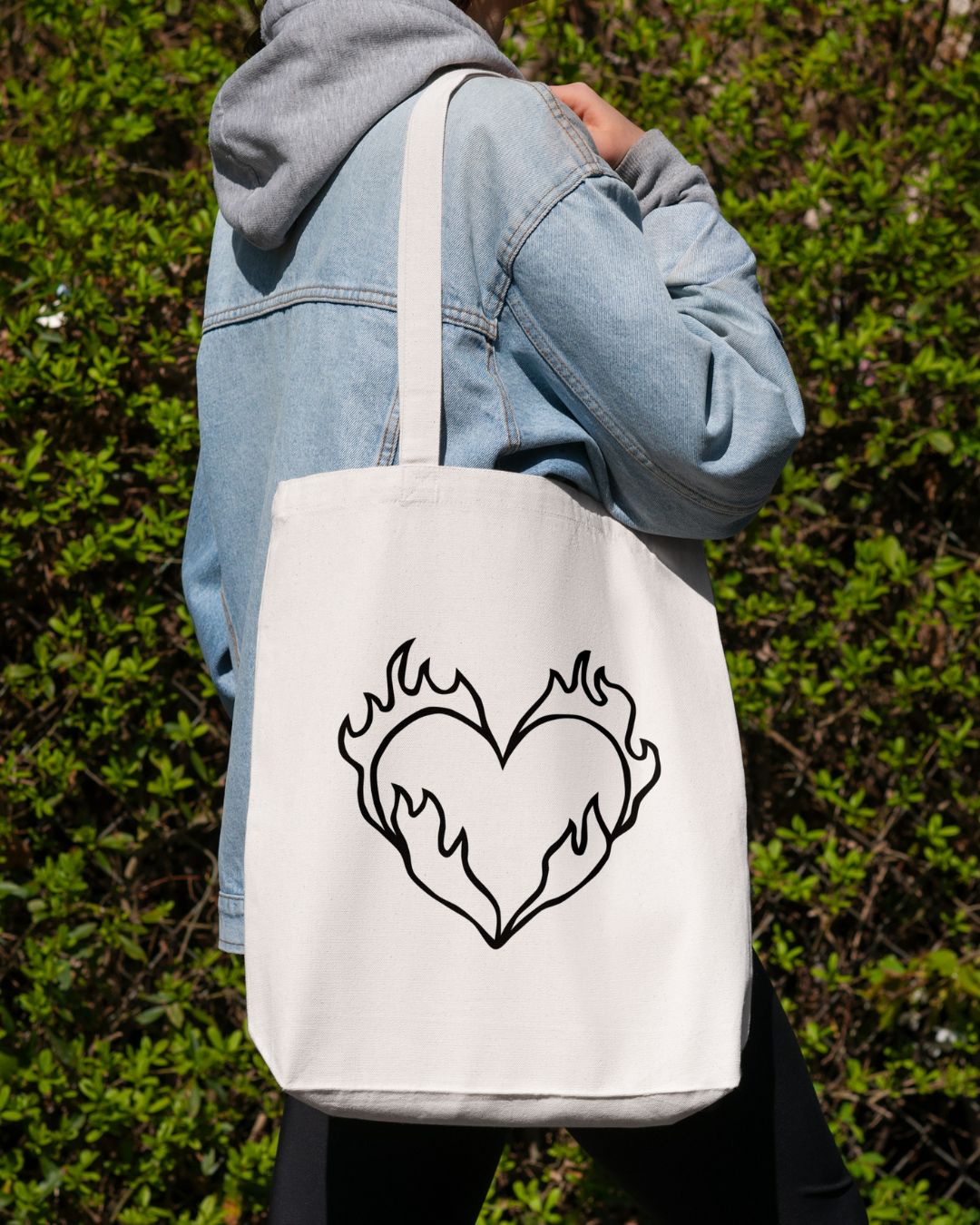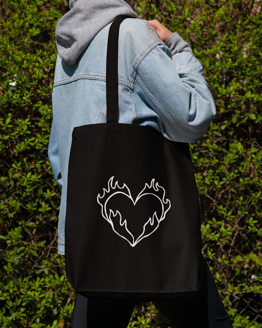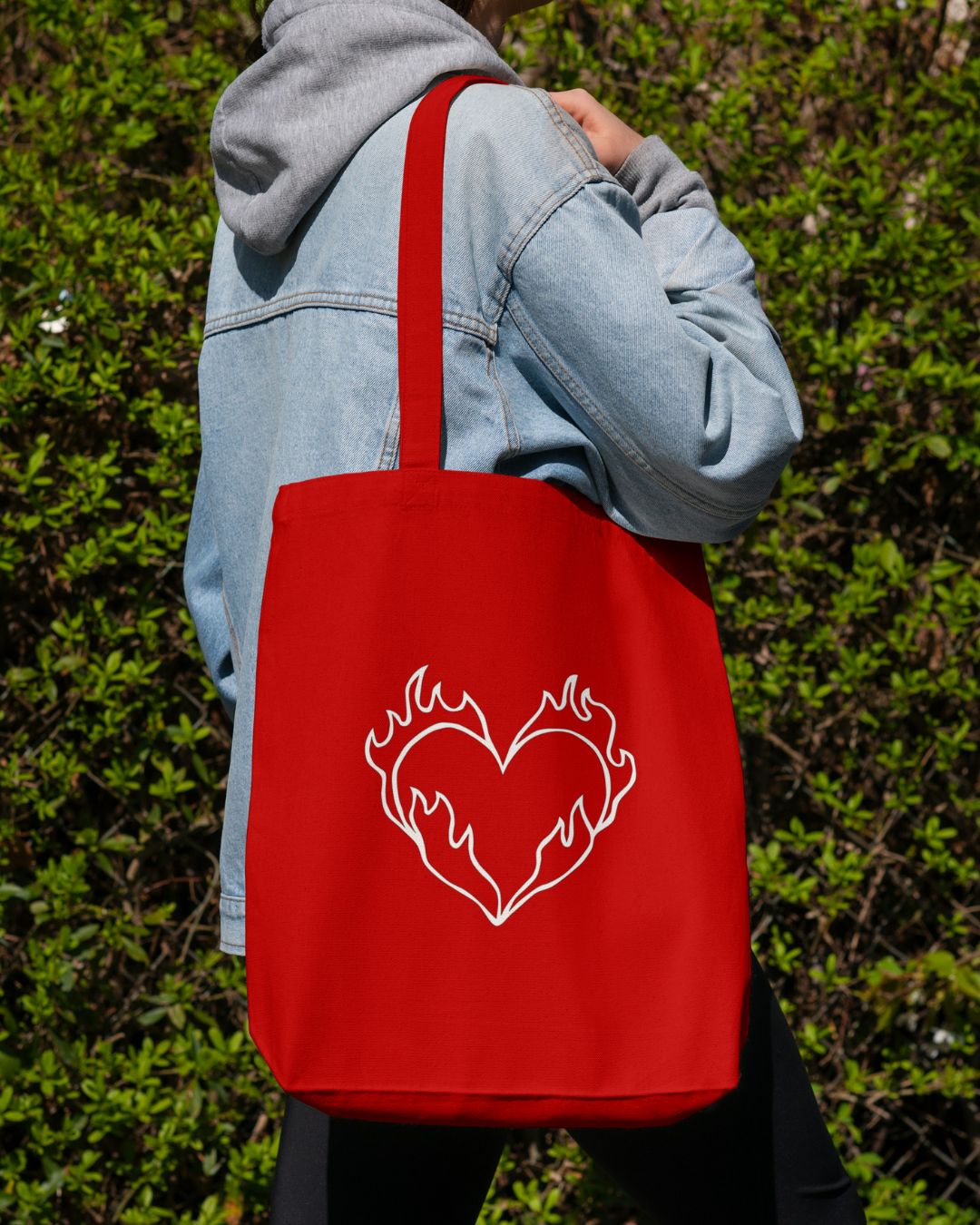 La borsa in tela “Cuore in fiamme” è stata creata dalla designer “Noe”