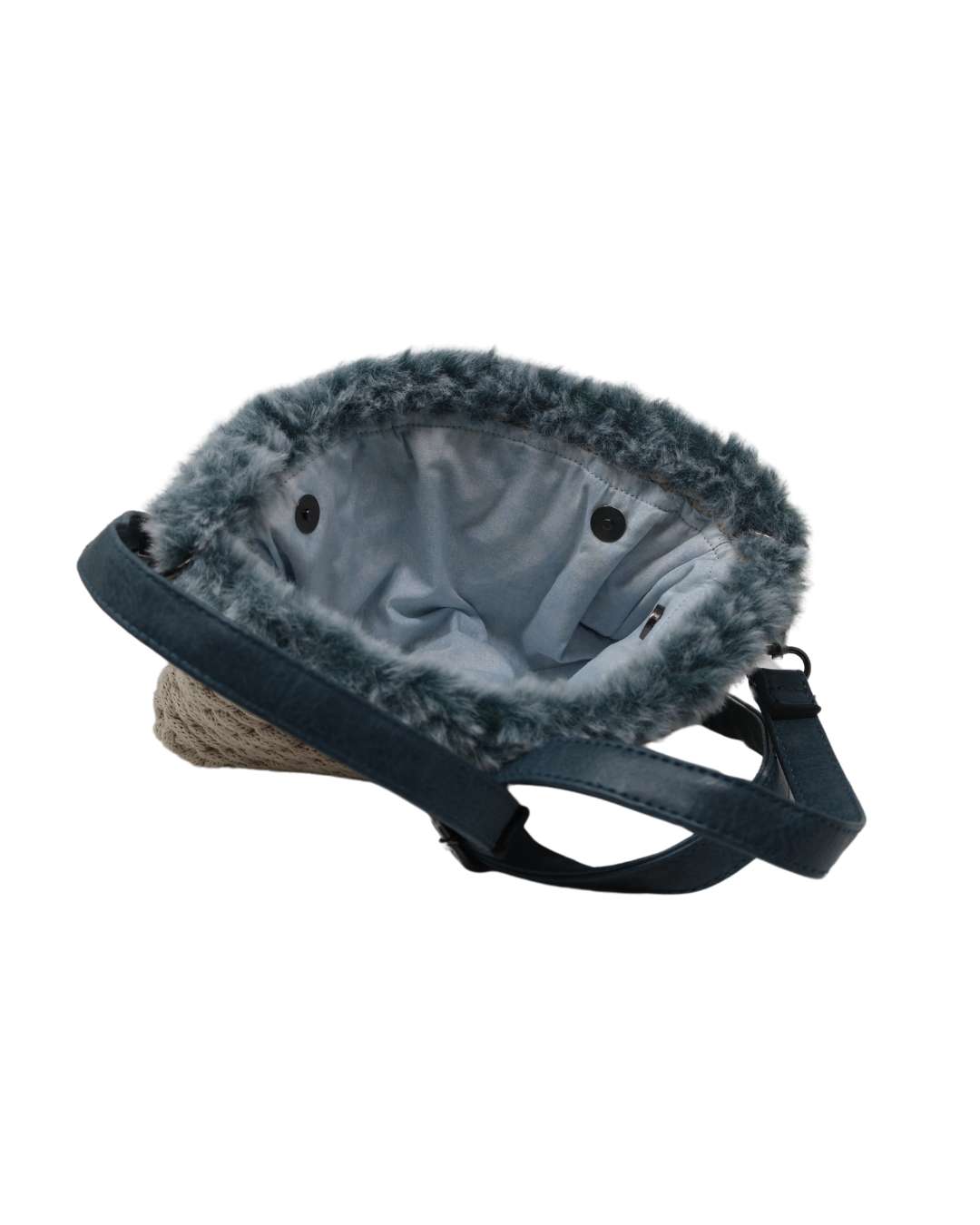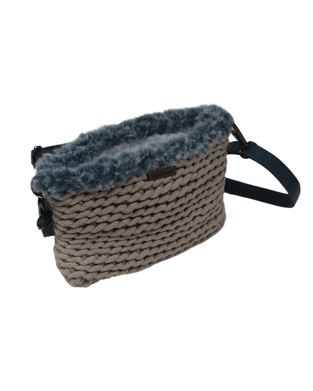 Pochette piccola con pellicciotto, con cinghia regolabile, chiusura a bottoncino e foderata internamente.