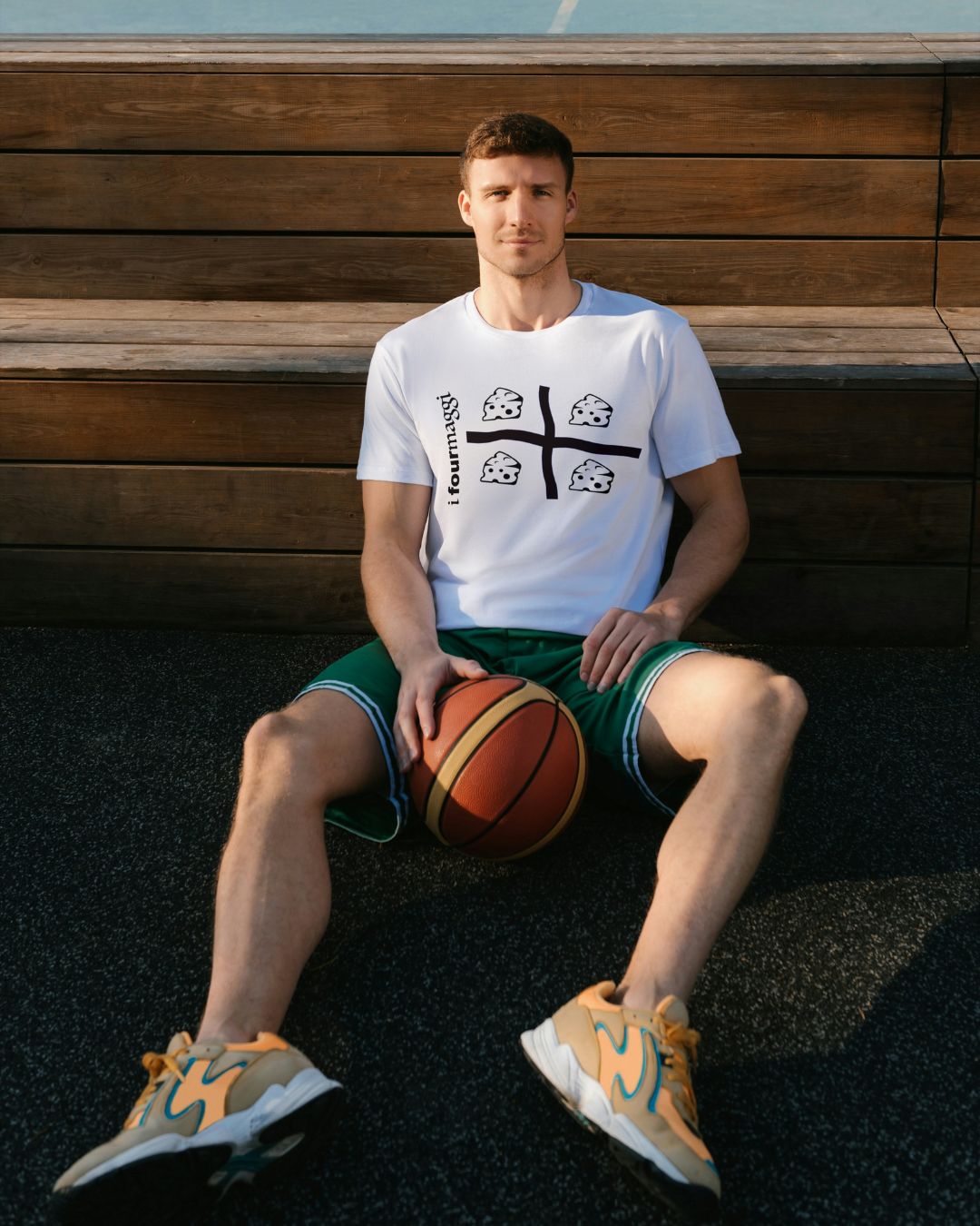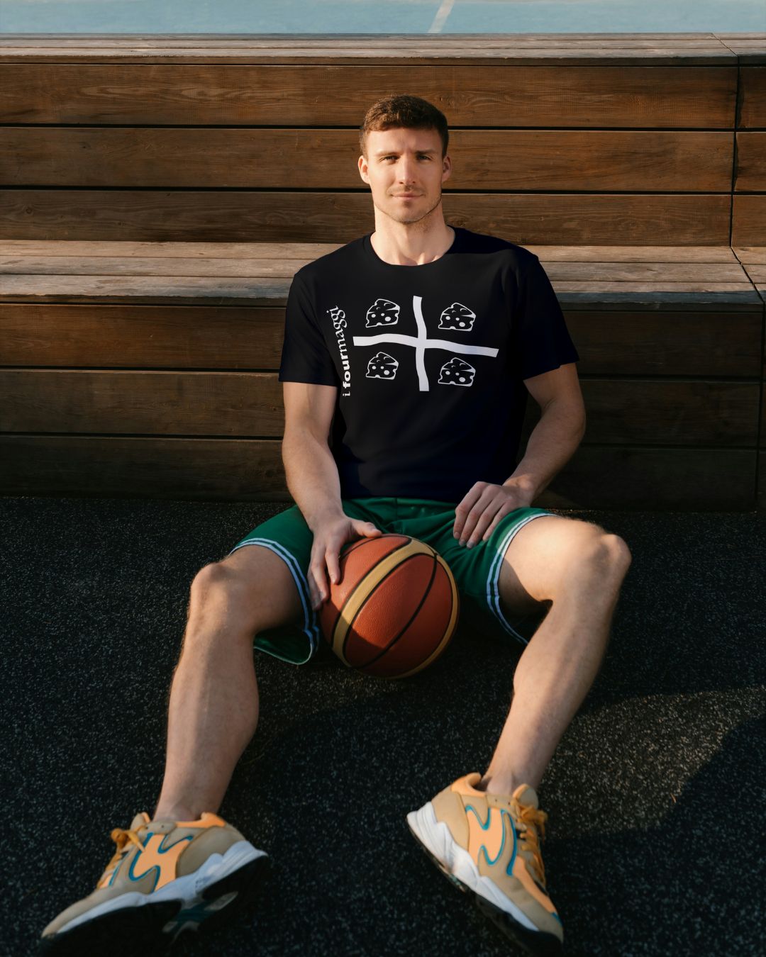 La T-Shirt-Fourmaggi nasce dall’idea del Designer “Dragon Baby” quando insieme ai suoi tre amici si sono trovati a pensare a come chiamare il loro gruppo: il primo dice: “Sembriamo i tre moschettieri”, il secondo si accorge di essere in quattro e dice: “Siamo i quattro formaggi!”. Da questo episodio il Designer ha pensato di creare una simbolo che potesse rappresentare il suo gruppo utilizzando la bandiera dei quattro mori opportunamente adattata e sfruttando la prima parte di formaggi trasformandola in four, quattro in inglese.
