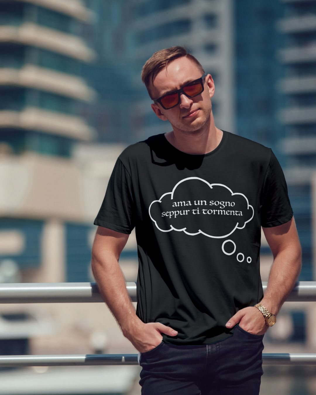 La T-Shirt “Nuvola” è stata creata dal Designer “Dragon Baby” ed è l’unione di un ballon-nuvola con una frase proposta dal Designer “Leis”